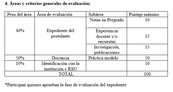 · El puntaje mínimo aprobatorio es65. El/la postulante debe contar, además, con la aprobación del 75% de los miembros de la comisión de evaluación.