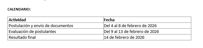 3. 14 febrero 2026 – Se difundirán los resultados por correo electrónico a todos los/las postulantes.